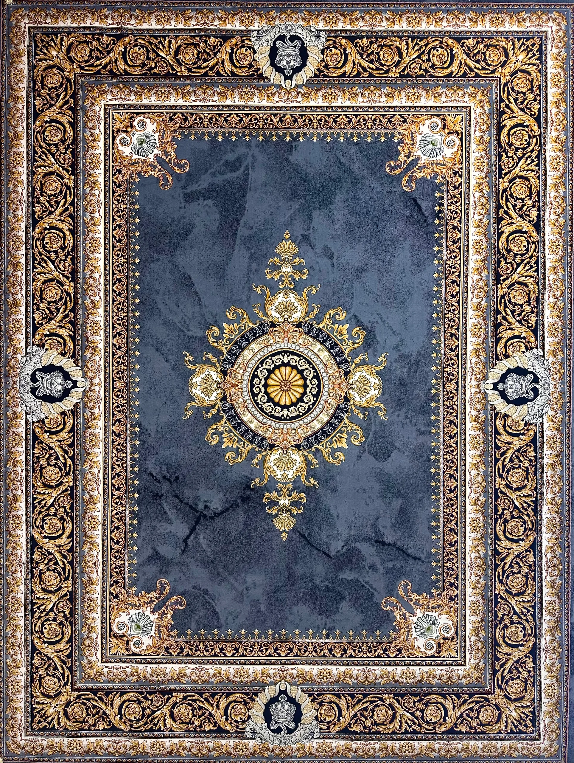 اگر به دنبال خلق فضایی فاخر و اشرافی هستید، این فرش را با مبلمان استیل به رنگ‌های کرم، طلایی یا سفید ترکیب کنید. پرده‌های مخمل به رنگ طوسی یا کرم، آینه‌های قاب طلایی و لوسترهای کریستالی، فضایی شبیه به کاخ‌های اروپایی را برای شما خلق خواهند کرد.